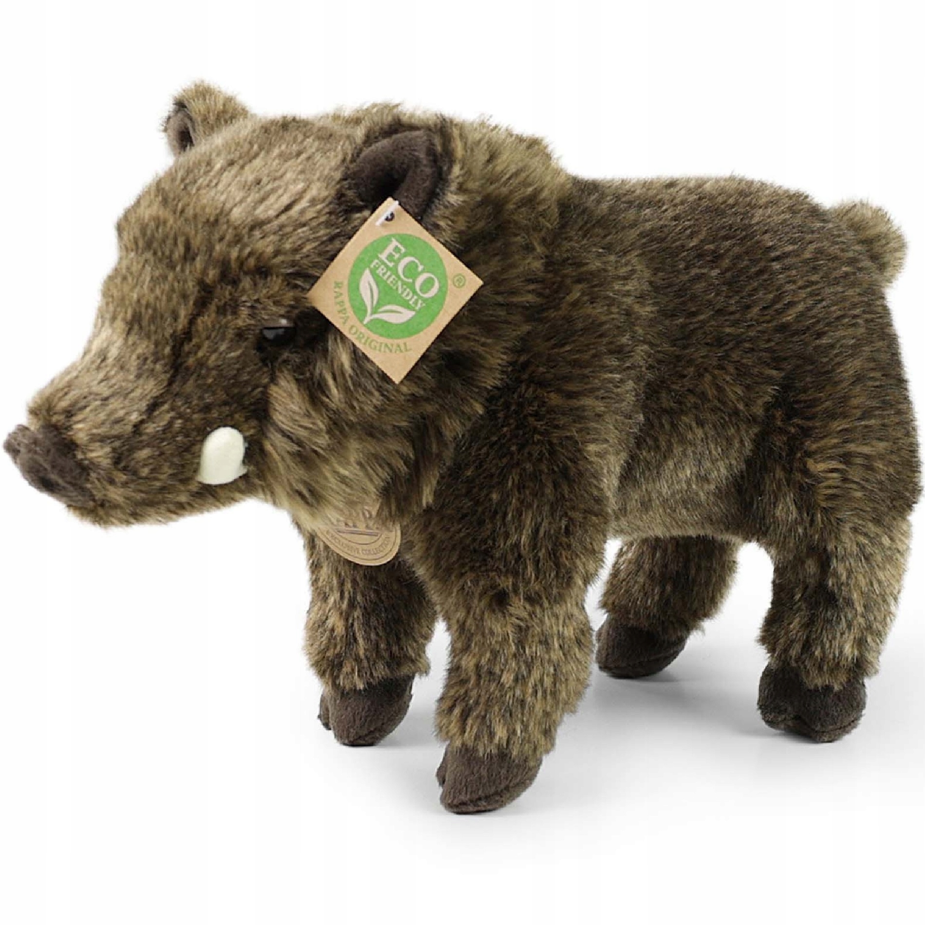 Maskotka Dzik Rappa Eco Friendly 30 cmRealistyczny dzik marki Rappa to urocza maskotka, która zachwyca naturalnym wyglądem i realistycznym odwzorowaniem prawdziwego zwierzątka. Wykonana z ogromną dbałością o szczegóły jest mięciutka i miła w dotyku.Maskotka należy do linii Eco Friendly – jej wypełnienie powstało w procesie recyklingu z przetworzonych butelek PET. To świadomy wybór, który łączy radość z zabawy z troską o planetę.Marka Rappa łączy troskę o środowisko z bezpieczeństwem najmłodszych użytkowników dlatego ten pluszak przeznaczony jest dla dzieci bez żadnych ograniczeń wiekowych.Ta urocza ekologiczna przytulanka świetnie sprawdzi się jako: prezent dla dziecka, upominek dla fana pluszaków, element dekoracyjny pokoju czy unikatowy dodatek do kolekcji pluszowych zwierzątek.
